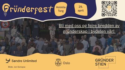 Søndre Unlimited og Gründerstien inviterer til Gründerfest på Holmlia tirsdag 29. april kl. 15-18!